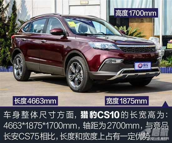外觀方面,獵豹CS10采用了最新的家族式前臉設(shè)計(jì),中網(wǎng)進(jìn)氣格柵采用蜂窩狀設(shè)計(jì),前大燈組內(nèi)還配備了LED日間行車(chē)燈。此外,前保險(xiǎn)杠下方的進(jìn)氣口大嘴式的造型凸顯兇猛。